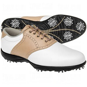 Mfg Closeouts! FootJoy Summer Series Golf Shoes Super soft leather uppers combined with ultra cushioned midsoles create pillows for your feet. FootJoy Ladies Summer Series Saddle Golf Shoe Closeouts feature: Comfort, breathability and durability with full grain leather uppers Natural Last full rounded toe character for fullness across the forefoot, instep and heel Slip Last Construction provides a more contoured underfoot platform and maximum flexibility EVA fit-beds provide lightweight cushioning underfoot for the life of the shoe Dri-Lex cover and lining helps lift moisture DuraMax rubber outsole provides turf gripping and performance plus durability Pulsar Cleats by Softspikes provide superior turf grip and walking comfort 1 Year Limited Waterproof Warranty Style: 98603 White/Tan Tan tumbled leather saddle and white smooth waterproof leather Sizes & Widths: Medium Available in sizes 5 thru 10 (including sizes) 11 (Not All Sizes In All Widths) Wide Available in sizes 5 thru 10 (including sizes) 11 FootJoy...The #1 Shoe In Golf!