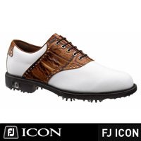 Mfg Closeouts! FootJoy Icon Saddle Golf Shoes Introducing the new flagship product from FootJoy -FJ Icon. FJ Icon shoes will be on the feet of elite Tour professionals around the world. Inspired by FootJoy's heritage, the FJ Icon combines both full grain and exquisite calfskin leathers, supported by a performance infused outsole. FootJoy Mens Icon Saddle Golf Shoe Closeouts feature: Calfskin is the finest shoe leather in the world. Luxurious calfskin detailing offers unparalleled beauty, fit, and resistance to stretching Premium full grain leather upper offers outstanding waterproof comfort, breathability, and durability Full leather linings provide superior comfort, slip resistance, and in-shoe breathability Leather covered dual density PU Fit-Bed, creates an underfoot base that more closely mimics the natural shape of your foot, which helps provide a quality fit and cushioned support Memory Foam is located in the tongue and around the collar, providing a custom fit to enhance comfort ICON Laser Last: Full rounded toe character, standard fit across forefoot and instep, with a slightly narrow heel Soft microfiber is strategically placed in the heel to ensure an optimal slip resistant fit Rather than using leather varying densities of TPU (thermoplastic urethane) are strategically placed throughout the outsole to produce a stable hitting platform Two-part forefoot flexibility channels, constructed of TPU (thermoplastic urethane) produce unparalleled walking comfort and flexibility Made from perforated alloy, the Torque Bar is used in the shank area of the outsole to increase midfoot stability and support ABS insole board is extremely flexible in the forefoot for walking comfort and extra firm in the heel for support and extra platform stability Stinger cleats by CHAMP offer superior traction throughout the entire golf swing. Unlike traditional spikes, its spring-flex traction makes the Stinger extra friendly to the greens 2 Year Limited Wa
