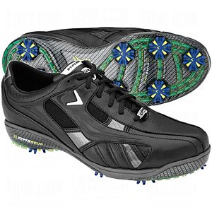 Callaway Sale! Hyperbolic Tour Golf Shoes Callaway Mens Hyperbolic Tour Golf Shoes feature: Ultra lightweight micro-fiber upper Upper has the lowest elongation available in upper materials Material will not feel "stretched out" as occasionally will happen with leather Micro-fiber ensures that the foot stays snug, comfortable and in control during the life of the shoe Soft last construction with Outlast Technology Last is unique to Callaway, with a low profile heel height that keeps you closer to the ground Cupped Hyperlite outsole XWT adjustable fit system RainSport/DrySport in-shoe comfort technology Low-profile TPU and EVA comfort outsole with perma spike loop CG insole technology is durable yet comfortable Shock heel absorbs shock for long lasting comfort XWT Forefoot Rebound improves responsiveness 7 Chevron comfort spikes for superior traction New leg design of spikes provides superior support and traction during play Dynamic legs provide increased strength, durability, and prevent clogging Oversized cleat design has shock-absorbing elements that reduce stress on your joints Hyperlite Stability Traction Loop helps reduce overall weight and uses the best TPU available 2 Year Waterproof Warranty Colors: Black/White White/Black Width & Sizes: Medium available in sizes 7 thru 11 (including 's) 12, 13, 14 Callaway Hyperbolic Shoes... Ground Control For Major Bombs!