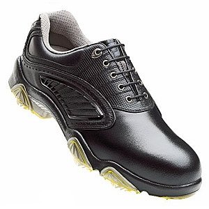The FootJoy SYNR-G Men's Golf Shoes are the seamless fusion of tremendous stability properties and exquisite styling. Engineered to bolster tour-level swing speeds, they utilize the exclusive G-Force outsole that features components like the tri-lateral stability frame and a perforated alloy midfoot stability bridge. These features shoulder the load, while the internal memory foam environment provides unsurpassed custom comfort and a personalized fit. The leather uppers offer soft, breathable, waterproof comfort, the full leather linings provide slip-resistance, the memory foam collar and tongue mold to your foot and the polyurethane fitbed gives durable underfoot cushioning. A silicone heel zone reduces friction and keeps your foot safely harnessed, while dual optiflex TPU provides extra flexibility. Stinger cleats by Champ provide greens-friendly traction.